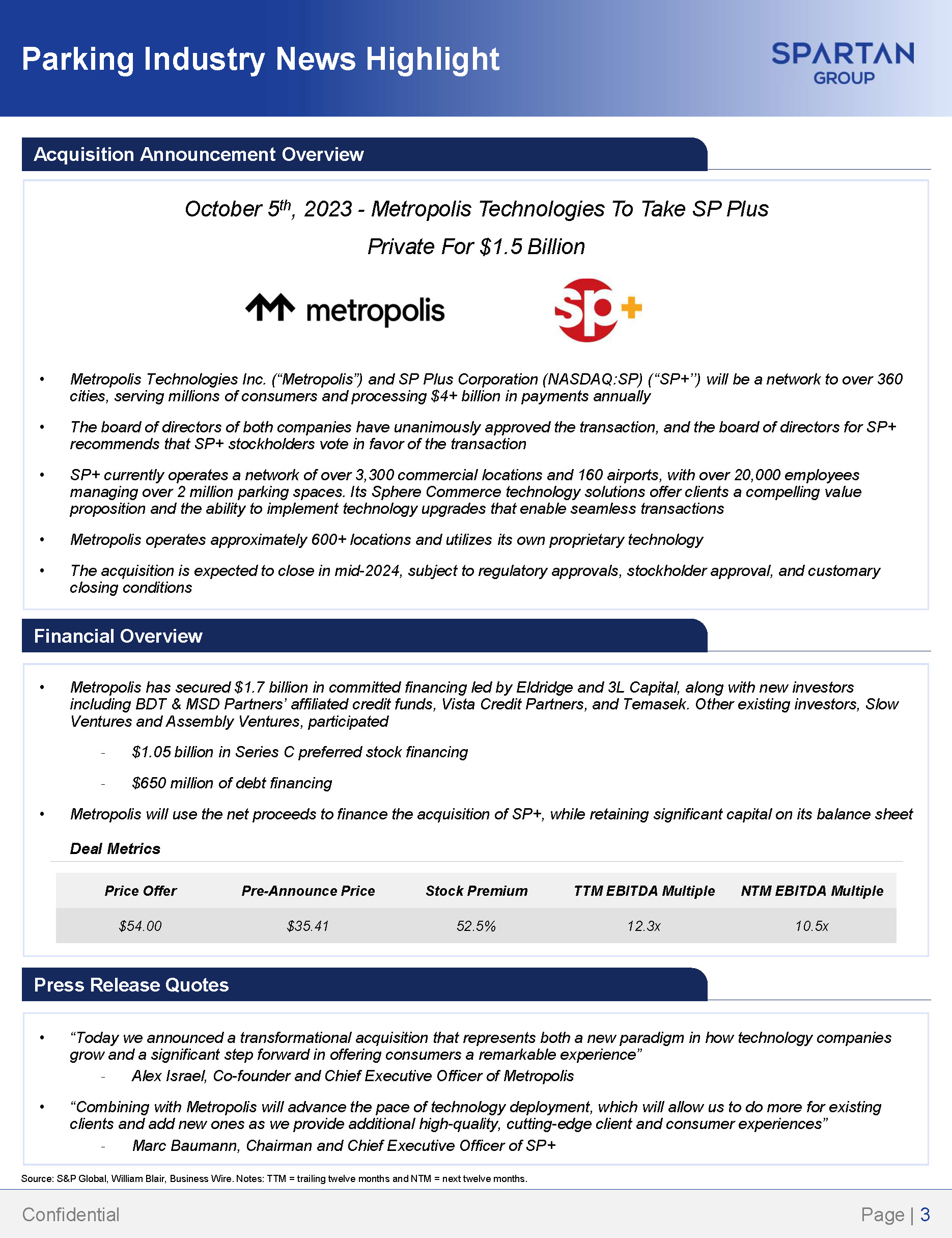 We are delighted to provide you with the latest edition of the Parking Industry Update, capturing our thoughts and takeaways from the NPA convention and highlighting the recent Metropolis announcement to acquire SP+. As the financial environment continues to change, we remain in your corner as a dependable advisor, offering you expert counsel and support in capital raising, acquisitions, and sales.